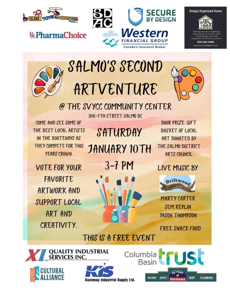 Will be taking place at the SVYCC Community Center. One afternoon event on Saturday, January 10th 2026 from 3-7PM. 20 spots available, $25 artist entrance fee. Contact Howard Roo to apply at 250-357-2006 or howardroometal@netidea.com .